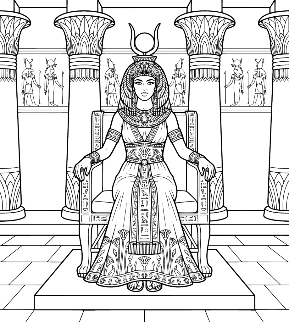 Our illustrations are crafted with intricate detail, capturing the regality, political intrigue, and daily life of Ptolemaic Egypt. From authentic attire and architectural elements to symbolic artifacts, every page invites deep engagement. Designed to challenge advanced artists while remaining accessible for beginners, this Cleopatra coloring book fosters a rewarding artistic experience.